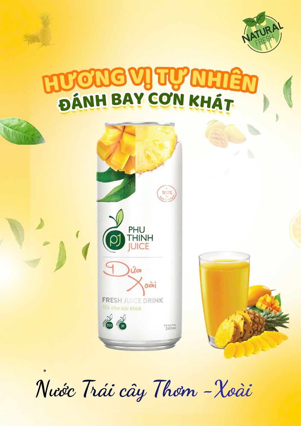 Nước Trái Cây Thơm Xoài là sự kết hợp hoàn hảo giữa vị ngọt mềm của xoài và vị chua thanh của thơm, tạo nên thức uống vừa ngon miệng vừa giàu dưỡng chất. Sản phẩm giúp tăng cường hệ miễn dịch, hỗ trợ tiêu hóa, làm đẹp da và cung cấp năng lượng tự nhiên mỗi ngày. Đây là lựa chọn lý tưởng cho gia đình, nhân viên văn phòng, người ăn kiêng hoặc bất cứ ai muốn chăm sóc sức khỏe theo cách đơn giản và tự nhiên nhất.